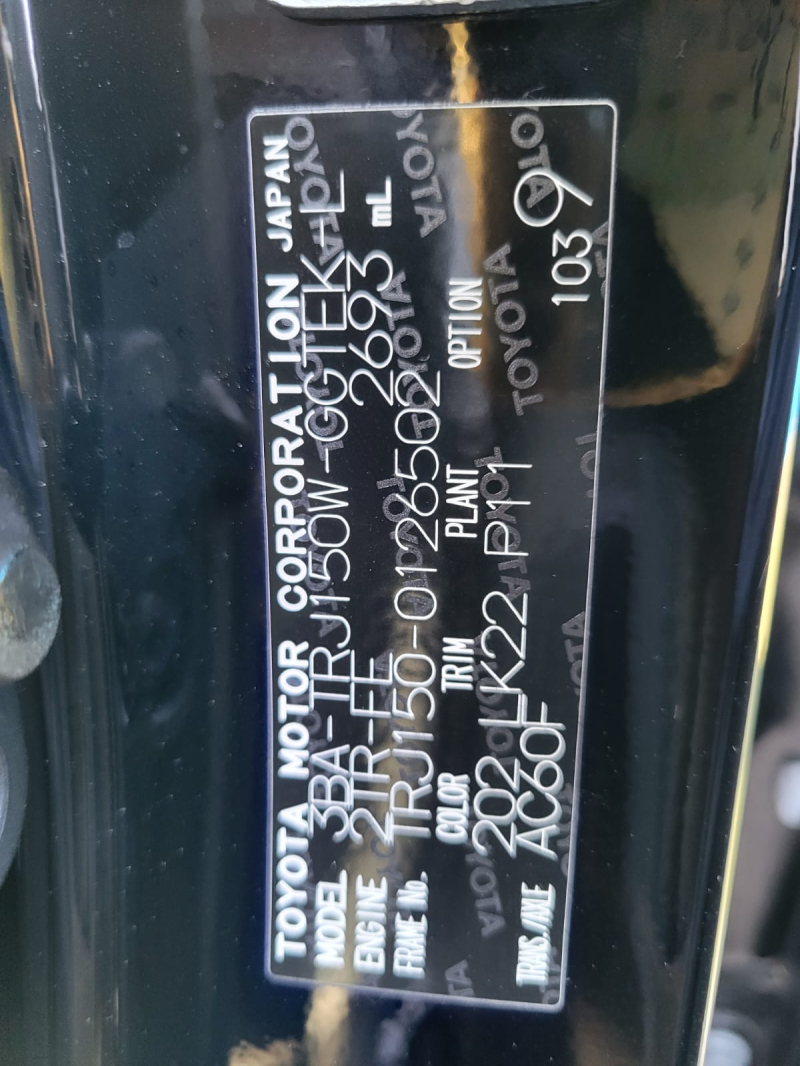 Chassis # TRJ150-0126502 Mileage